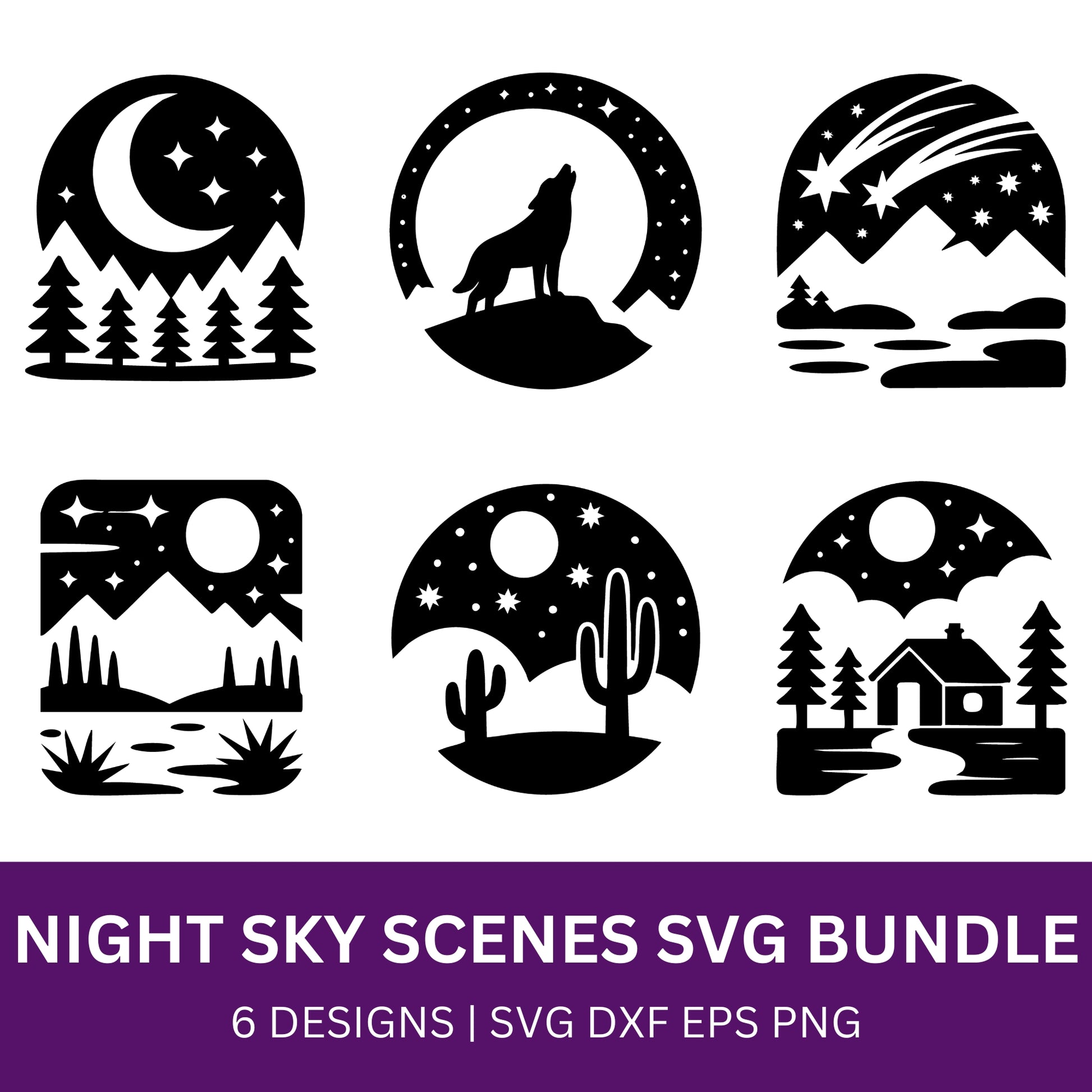 Night Sky Scene SVG Bundle PLR